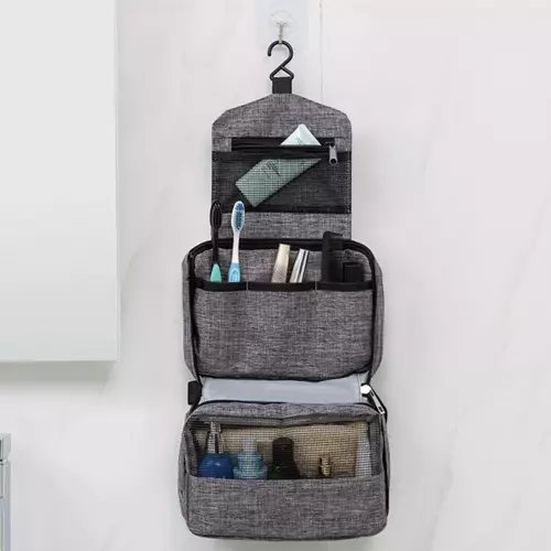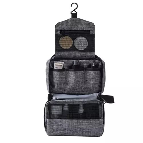 ĀĶIS + ŪDENSIZTURĪBA – iekšā ievietotais pakaramais tiek izmantots atvērtas kosmētikas somiņas pakarināšanai. Tas ir īpaši noderīgi ceļojot. Pēc pakāršanas visa kosmētika ir sasniedzama! Turklāt materiāls, no kura izgatavots kosmētikas maisiņš, ir ūdensizturīgs. Tas ir īpaši svarīgi vīriešiem, kuri dušā ņem līdzi visu tualetes piederumu maisiņu.