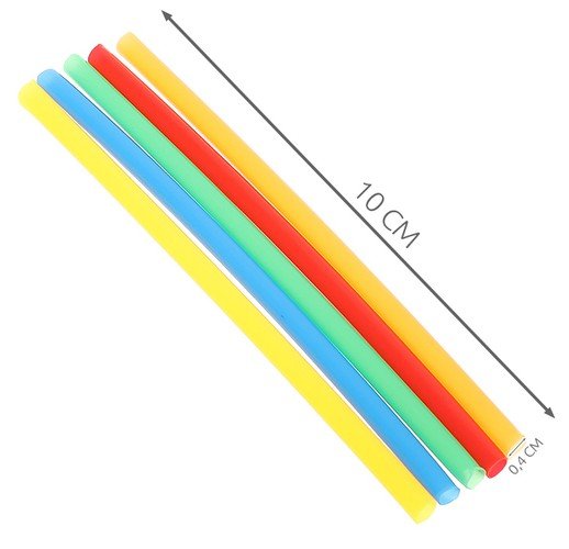 ? SPECIFIKĀCIJA – krāsas: sarkana, oranža, zila, zaļa, dzeltena; caurules izmēri: 0,4 x 10cm; svars ar iepakojumu: 160 g.