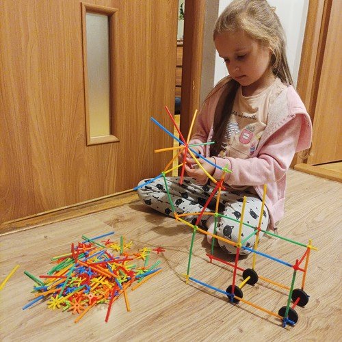 ? 238 ELEMENTI! – komplektā ietilpst 120 krāsaini salmiņi, 114 savienotāji, un 4 putuplasta gredzeni, kas ļauj realizēt gandrīz neskaitāmus projektus. Komplektā iekļautie riteņi ļaus dažādot konstrukciju, piem. izveidot transportlīdzekļus, ratiņus utt.