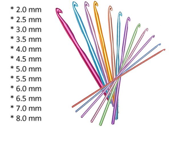 PROFESIONĀLĀ TAMBĒŠANA - komplektā ietilpst 12 krāsainas tamboradatas dažāda izmēra no 2,0 mm līdz 8,0 mm. Tiem ir ergonomiska forma, plakans ieliktnis un dziļi āķi, kas ļaus dzijai neslīdēt, bet labi āķoties.