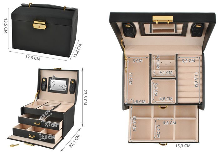 Ietilpīgs – pateicoties 20 dažādiem nodalījumiem un padziļinājumiem, maciņš palīdzēs perfekti sakārtot juvelierizstrādājumu kolekciju.