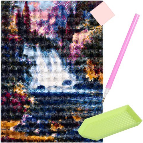 SPECIFIKĀCIJA – raksts: ūdenskritums; audekls, kas pārklāts ar lipīgu slāni: jā; komplektā: krāsaini dimanti, aplikators, sausā līme, konteiners; izmērs: 30x40 cm; attēla izmērs: 25x35cm; svars: 0,1 kg; svars iepakojumā: 0,103 kg