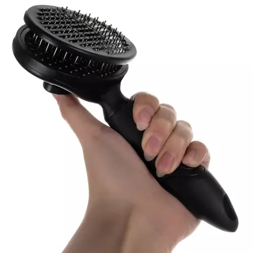PAŠATTĪRĪŠANĀS – birstīte ir pašattīroša, pateicoties ērtai pogai tā efektīvi un ātri noņem uz adatām iestrēgušos matiņus. Šis ir ļoti ērts risinājums mājdzīvnieka ķemmēšanai, jo ķemmējot nav jārauj ārā kažoks, vienkārši izmantojiet ērto pogu un apmatojums nāks augšā pats no sevis.