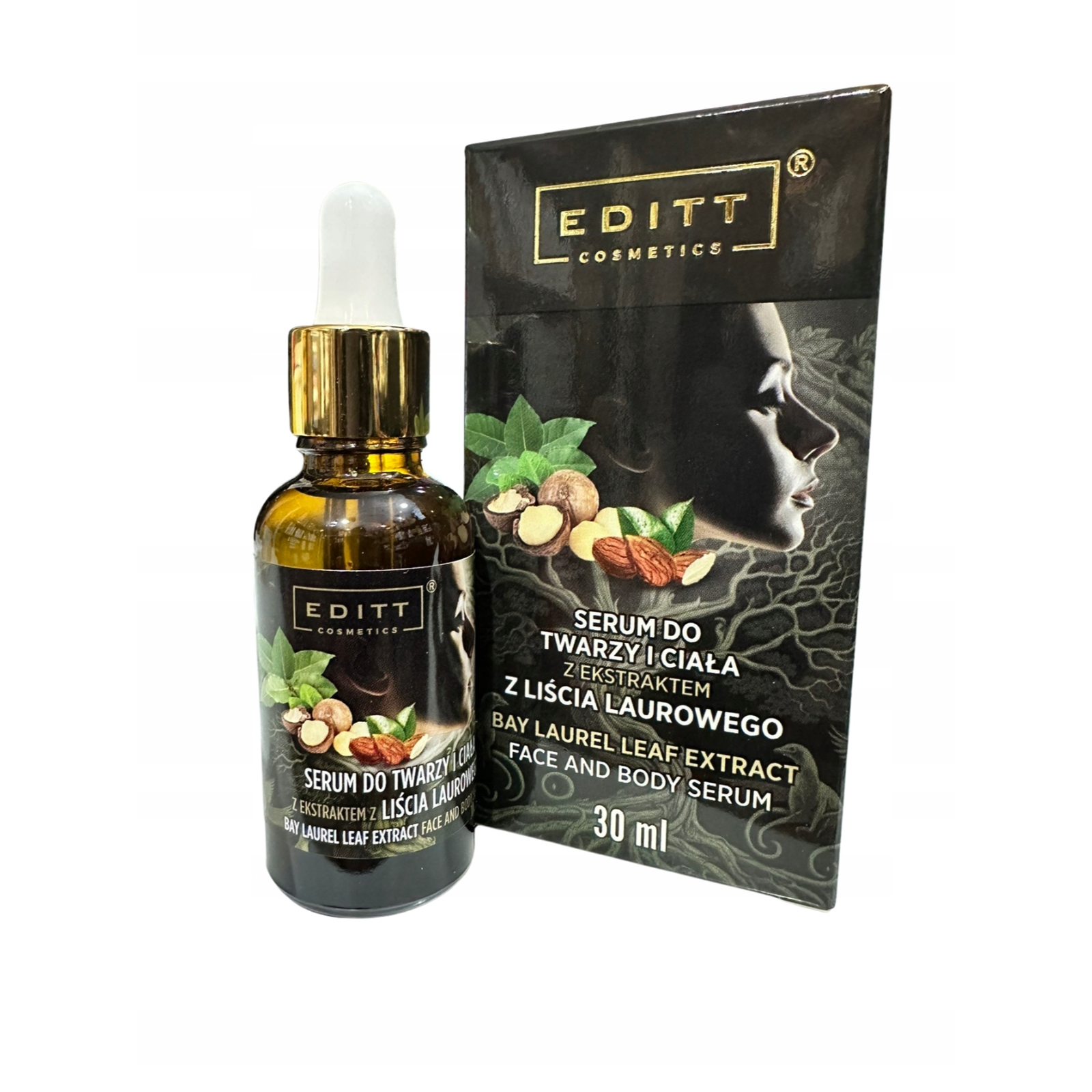 Atklājiet dabas spēku, kas ietverts elegantā pudelītē! EDITT COSMETICS serums ar lauru lapu ekstraktu ir unikāls kosmētikas līdzeklis, kas visaptveroši rūpēsies par jūsu sejas un ķermeņa ādu.