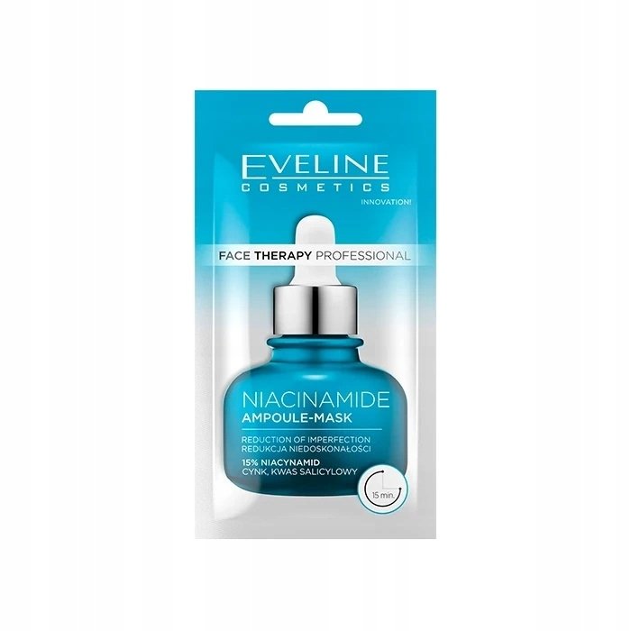 Eveline Face Therapy Professional ir sejas masku sērija ar tūlītēju iedarbību. Kopšana vēl nekad nav bijusi tik vienkārša un vienlaikus ļoti efektīva. Vienkārši uzklājiet krēmveida masku, noskalojiet to pēc 15 minūtēm, un jūsu sejas izskats ievērojami uzlabosies. Krēmveida sejas maska - ampula Eveline Face Therapy Professional Niacinamīds ir īpaši ieteicama taukainai, kombinētai un problemātiskai ādai. Inovatīvā formula satur 15% niacinamīda, cinka un salicilskābes, kas kopā uzlabo tās izskatu un stāvokli. Kosmētikas līdzeklis efektīvi ierobežo sebuma izdalīšanos, savelk poras un samazina visas nepilnības un aknes bojājumus. Turklāt tas samazina krāsas izmaiņas, kas redzami izlīdzina tās krāsu. Rezultātus var redzēt jau pēc pirmās lietošanas reizes!