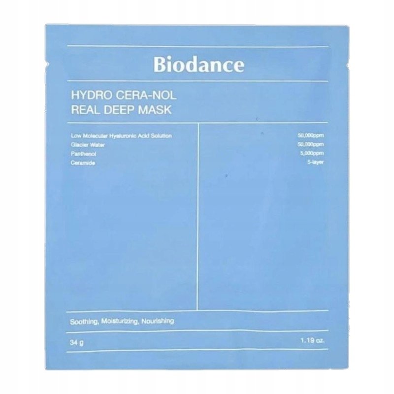 BIODANCE Hydro Cera-nol Real Deep Mask ir intensīvi mitrinoša hidrogēla sejas maska, kas ir ideāli piemērota sausai, dehidrētai un jutīgai ādai .