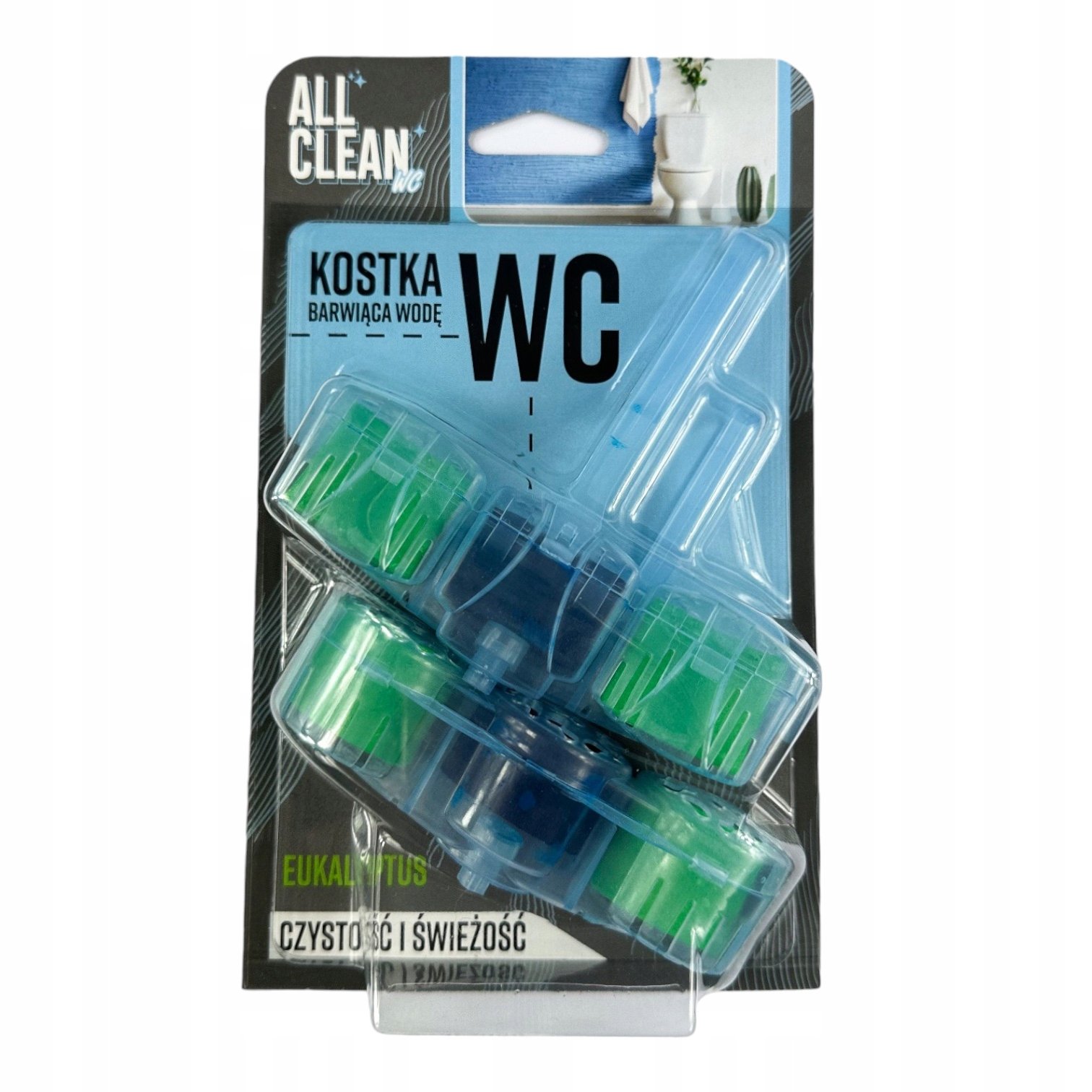 Tualetes poda krāsošanas bloks ar eikalipta aromātu „All Clean” ir produkts, kas uzturēs jūsu vannas istabu tīru un svaigi smaržojošu. Pateicoties unikālajai eikalipta formulai, tas efektīvi cīnās ar kaļķakmens uzkrāšanos un nodrošina ilgstošu svaigumu. Uzturiet tualetes higiēnu ar „All Clean” eikalipta aromāta tualetes poda krāsošanas bloku.