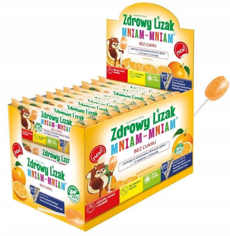 Veselīgs Yum-Yum konfekte ar C un D vitamīnu zobiem, kauliem un imunitātei. Apstiprinājusi Polijas Zobārstu asociācija.