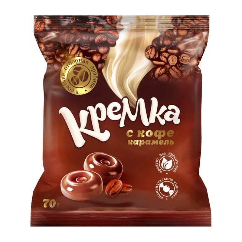 Karamele pamatoti tiek dēvēta par visu pasaules saldumu karalieni. Apaļas konfektes ar spilgtu, atlasītas Arabica kafijas garšu un dabīgu kafiju. Bez krāsvielām. Kompaktā iepakojumā esošās pastilas ir ērti paņemt līdzi ceļā, uz darbu vai skolu. Sūkājamās konfektes var pasniegt kā desertu, kas nedaudz dažādos jūsu ierasto uzturu.