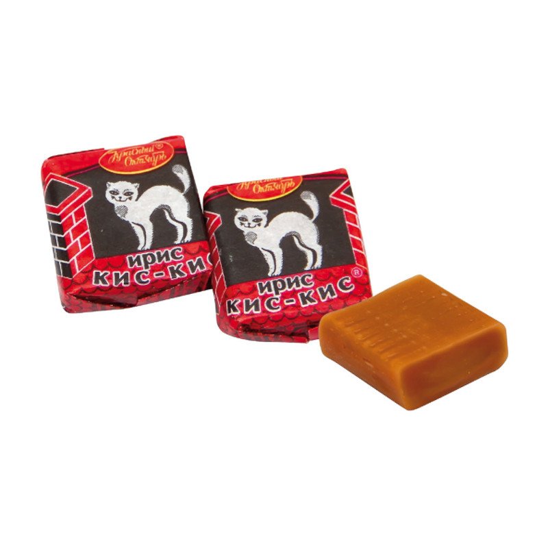 Piena īriss "Kis-Kis" no fabrikas "Sarkanais Oktobris". Slaveni īrisi ar maigu, krēmīgu garšu un spilgtiem karameļu toņiem. Blīvi aromātiski kvadrātiņi tradicionālos konfekšu papīrītos ar baltiem un melniem kaķiem, kas staigā pa ķieģeļu jumtiem.