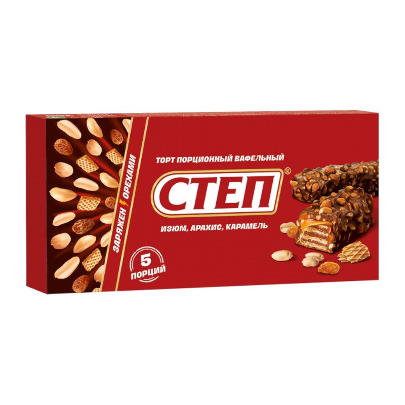 Vafeļu torte "СТЕП" porcijās ar rozīnēm, zemesriekstiem un karameli, 200 g