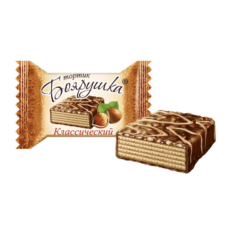 Porciju vafeļu torte ar šokolādes pildījumu, pārkaisīta ar sasmalcinātiem zemesriekstiem un pārklāta ar glazūru.