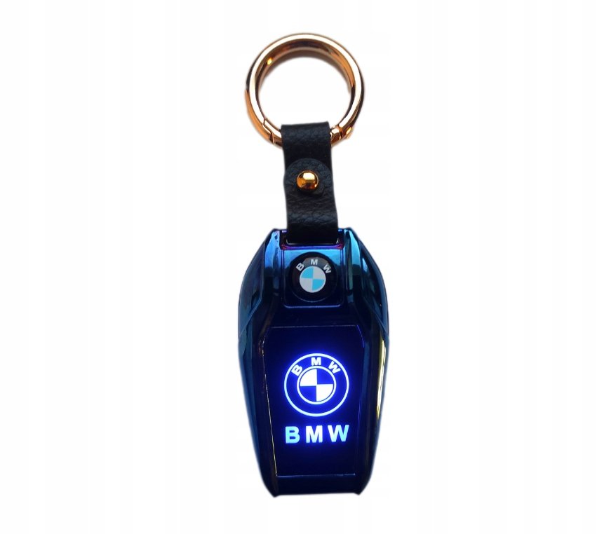Atslēgu piekariņš ar iebūvētu šķiltavu, lukturīti un apgaismotu automašīnas zīmola logotipu.