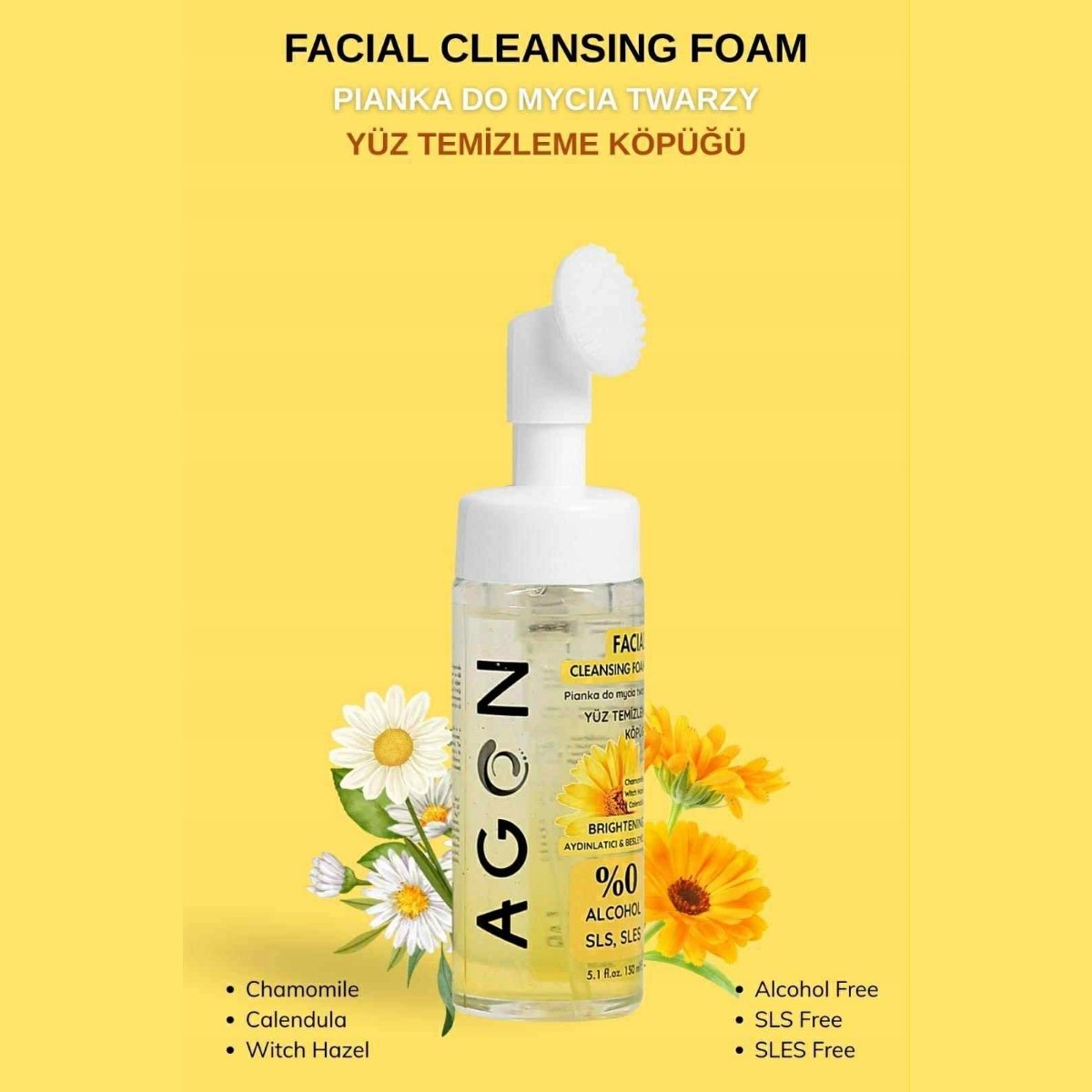 AGON sejas tīrīšanas putas – sejas tīrīšanas putas ar kumelītēm, kliņģerītēm un burvju lazdu