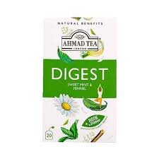 Mūsu organismi ir neiedomājamas mašīnas, tomēr dažkārt pat vislabākajām mašīnām ir nepieciešams mazliet eļļas, lai tās darbotos bez aizķeršanās. Ahmad Tea Digest Infusion palīdz gremošanas sistēmai ar tās attīrošo piparmētras, lakricas, fenheļa un biotīna (zināms arī kā H vitamīns) maisījumu. Tā ir garda piparmētru zāļu tēja, kas nomierina un atjaunina. Šī tējas maisījuma pagatavošanai iesākumā mūsu profesionālie tējas meistari liek kopā krūzmētru un piparmētru. Piparmētra jau gadsimtiem ilgi ir izmantota kā dabisks līdzeklis gremošanas traucējumu ārstēšanai, tāpēc šeit tas ir lielisks pamats. Mēs pievienojam vēl lakricas sakni un fenheli to burvīgo saldā anīsa nošu dēļ, savukārt nedaudz kumelīšu un kazeņu lapu piešķir smalku, vasarīgu aromātu buķeti. Tomēr tieši dabiskā biotīna pievienošana ir tas, kas patiešām palielina šīs tējas spējas gremošanas sistēmas darbības uzlabošanai. Kompleksais B vitamīns, biotīns palīdz organismam pārvērst pārtiku enerģijā, kas savukārt veicina labāku vielmaiņu. Šis burvīgais maisījums sniedz tūlītēju atspirdzinājumu jūsu garšas kārpiņām, kā arī vienlaikus rūpējas par jūsu vēderu ilgākā laika posmā. Šajā kastītē ir 20 tējas maisiņi ar aukliņu vieglai tējas pagatavošanai tasītē vai kanniņā. Katrs maisiņš ir iepakots folijā, saglabājot to aromātu un nodrošinot, ka katra tējas pagatavošana sniedz pirmreizēju svaigumu. Šī brīnišķīgā vara krāsas un piparmētru aromāta tēja ir lielisks dzēriens pēc kārtīgas maltītes, jo palīdz sātīgu ēdienu sagremošanā un nomierina uzpūtušos vēderu. Diskomforts var uzrasties visdažādākajās situācijās, tāpēc turiet Ahmad Tea Digest Infusion pa rokai katram gadījumam. Šis maisījums ir no 100% dabiskām sastāvdaļām, tāpēc tas nesatur kofeīnu. Tieši tāpēc tas ir brīnišķīgs dzēriens vakaros gremošanas veicināšanai, kamēr guļat. Nomierinošais kumelīšu efekts ļaus jums arī labāk iemigt.