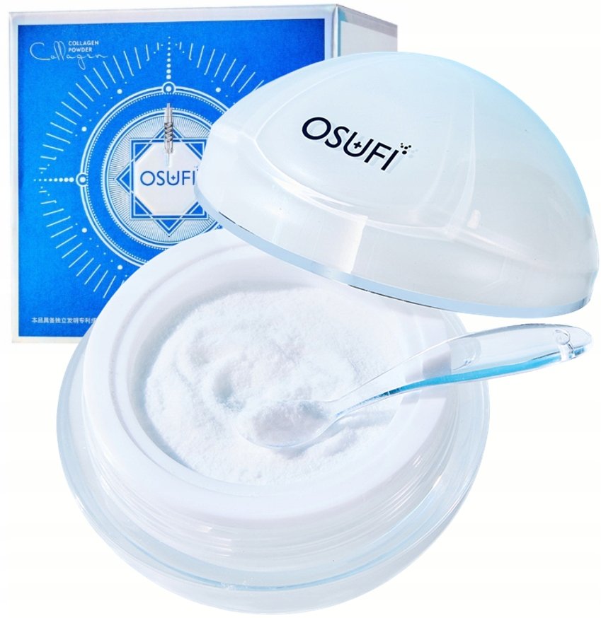 OSUFI – kolagēna polipeptīdu pulveris 30g ir inovatīvs produkts ar izcilām grumbu mazināšanas un mitrinošām īpašībām, kas, nonākot saskarē ar ādu, pārvēršas krēmā. Pateicoties tā uzlabotajai formulai, kas satur četru veidu peptīdus un dubulto kolagēnu, tas visaptveroši iedarbojas uz ādu, veicinot tās atjaunošanos, nostiprināšanos un grumbu izlīdzināšanu. Produkts apvieno dabiskos ziedu ekstraktus, kas mitrina un baro pat jutīgo acu zonu, ar sastāvdaļām, kas atbalsta kolagēna un elastīna sintēzi.