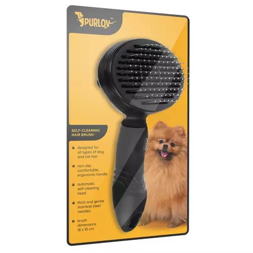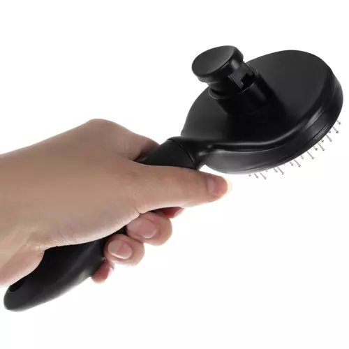 PAŠATTĪRĪŠANĀS – birstīte ir pašattīroša, pateicoties ērtai pogai tā efektīvi un ātri noņem uz adatām iestrēgušos matiņus. Šis ir ļoti ērts risinājums mājdzīvnieka ķemmēšanai, jo ķemmējot nav jārauj ārā kažoks, vienkārši izmantojiet ērto pogu un apmatojums nāks augšā pats no sevis.