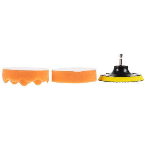 1 x Velcro pulēšanas sūklis, gofrēts (100 mm) 1 x plakans Velcro pulēšanas sūklis (100 mm) 1 x amortizatora galva ar Velcro (100 mm) 1 x pagarinājums ar 8 mm kātu 3 x mīksts oranžs abrazīvs audums 3 x vidēji plāns zils abrazīvs audums 3 x vidēji plāns bordo abrazīvs audums 3 x zaļš, ciets, biezs abrazīvs audums 6 x dažāda izmēra otas ar 8 mm kātu