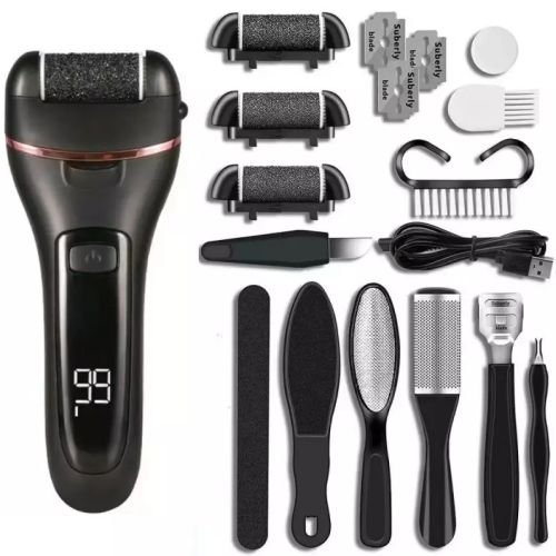 Komplektā ietilpst 3 dažādu gradāciju uzgaļi (2 rupji un 1 delikāts) un vairāki papildu piederumi, piemēram, otas un vīles rūpīgākai kopšanai.