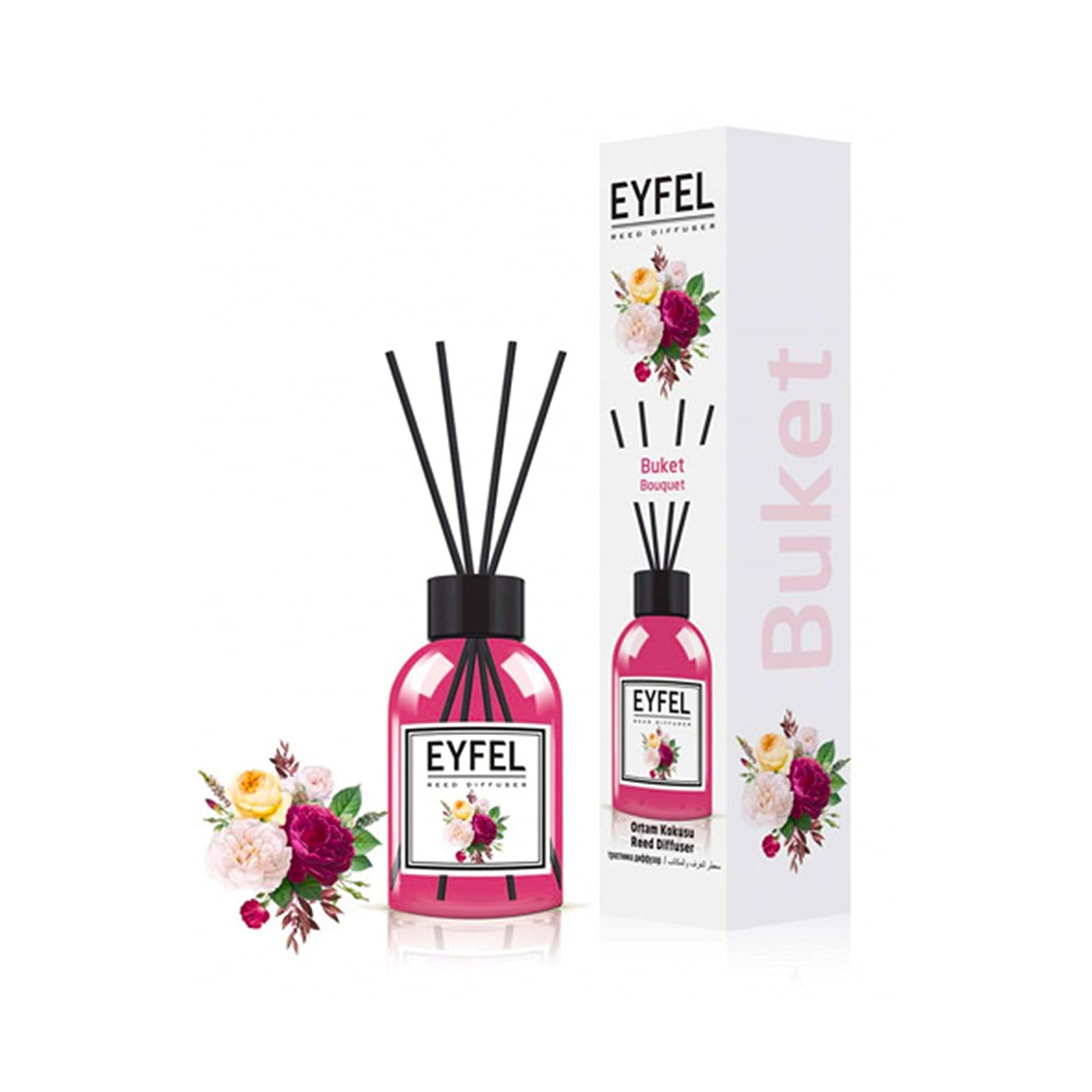 Eyfel aromātisko kociņu difuzors ar ziedu buķetes aromātuLietošanas laiks:2-6nedēļasTilpums:120mlIzcelsmes valsts:Turcija