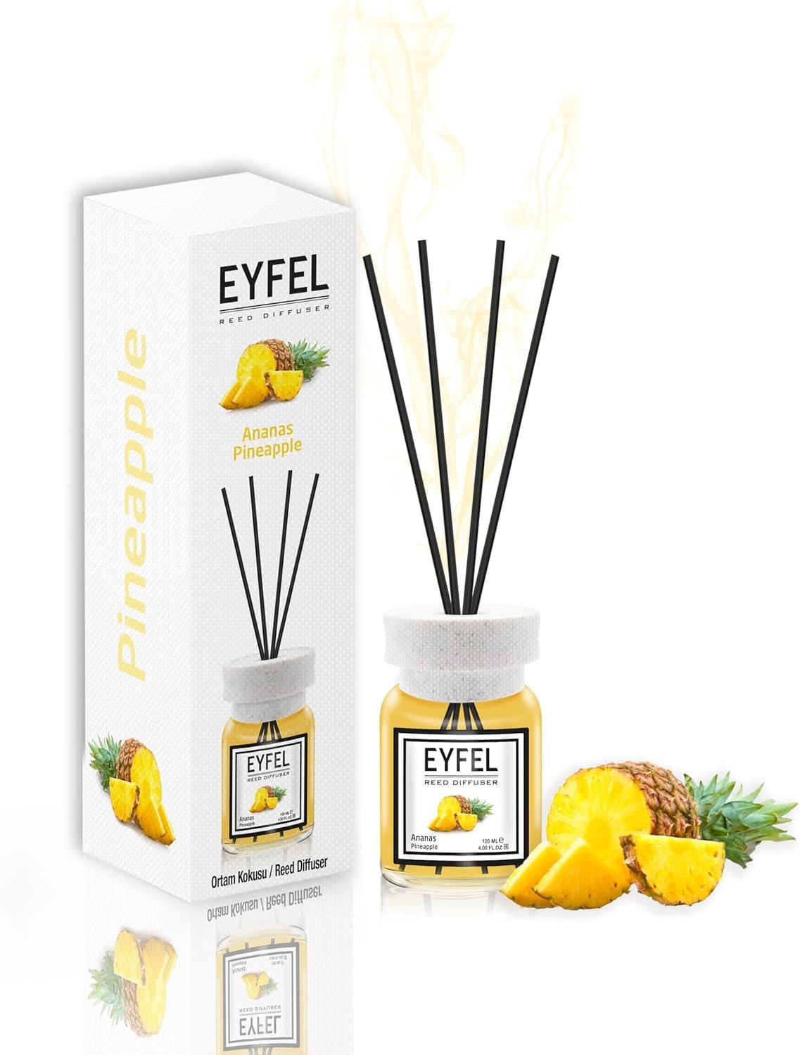 Eyfel aromātisko kociņu difuzors ar ananāsa aromātuLietošanas laiks:2-6nedēļasTilpums:120mlIzcelsmes valsts:Turcija