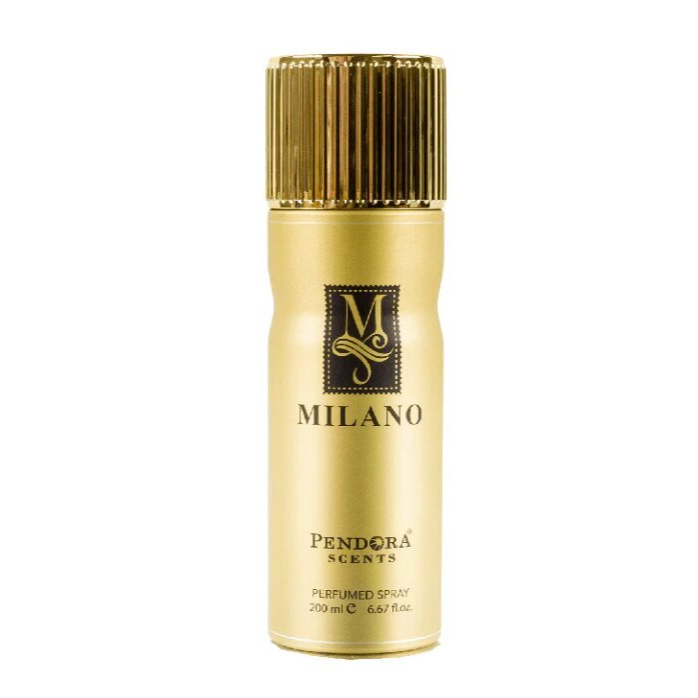Milano smarža pārliecinātiem, harizmātiskiem un cienīgiem vīriešiem, kuri vienmēr ievēro savu vārdu un principus. Dezodoranta pudelei ir zelta krāsa, kas izceļ šīs neaizmirstamās smaržas īpašnieka vīrišķību, eleganci un statusu. Kompozīcijas augšējās notis atveras ar mandarīnu, piparmētru un greipfrūtu akordiem. Intensīvās sirds notis sastāv no garšvielu, rozes un kanēļa aromātiem. Kompozīciju noslēdz pačūlijas, balto koku, stiaks un ādas notis.