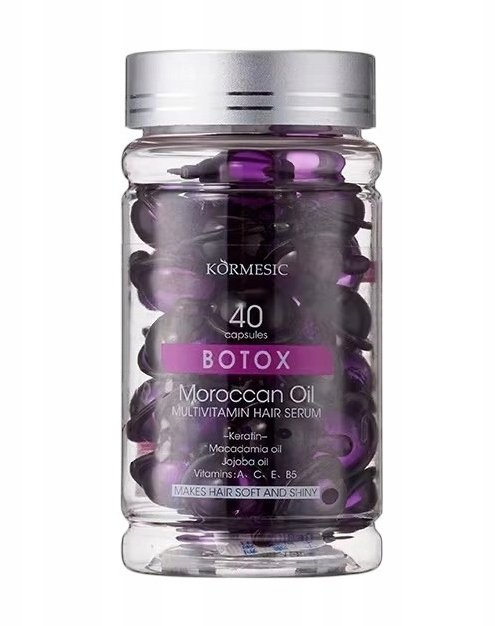 Kormesic kapsulas ir unikāla matu kopšanas procedūra, kas apvieno dabisko eļļu un vitamīnu spēku. Pateicoties koncentrētajai formulai, produkts intensīvi baro, mitrina un atjauno matus, atjaunojot to veselīgu izskatu, spīdumu un elastību. Katra kapsula satur precīzu aktīvo vielu devu, kas atbalsta matu struktūras atjaunošanu un aizsargā pret kaitīgiem ārējiem faktoriem.