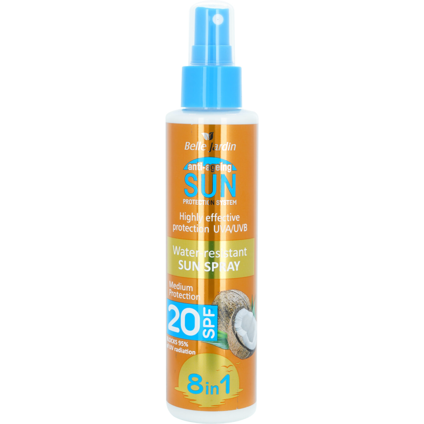 Saules aizsardzības aerosols sauļošanai satur jaunas paaudzes filtrus, kas nodrošina tūlītēju un efektīvu aizsardzību pret ultravioletā starojuma ietekmi, bloķējot UVA, UVB starojumu. Novērš saules apdegumus, pigmenta plankumus un vasaras raibumus, vienlaikus aizsargājot DNS ādas šūnu struktūru. Ūdensizturīgā formula garantē drošu aizsardzību sauļošanās laikā.
