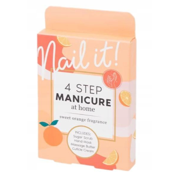 Nail It roku kopšanas komplekts uzlabos jūsu roku un nagu veselību un izskatu. Komplektā ietilpst 4 produkti, kuriem ir skaists apelsīnu aromāts.