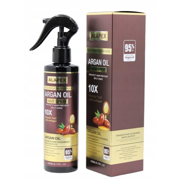 Argana eļļas matu laka ir inovatīvs matu kopšanas līdzeklis, kas vispusīgi mitrina, baro un atjauno matus. Pateicoties dabīgajai argana eļļai un kolagēna proteīniem, produkts palīdz atjaunot matu struktūru, novērš lūšanu, matu galu šķelšanos un veicina matu augšanu. Laka ir paredzēta ikdienas kopšanai visiem matu tipiem — sausiem, krāsotiem, trausliem vai plāniem. Vieglā formula nepadara matus smagus un nodrošina veselīgu, dabisku spīdumu.