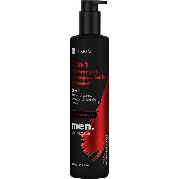 Enerģizējošs ķermeņa mazgāšanas līdzeklis un matu un bārdas šampūns vīriešiem ir 3 vienā produkts, kas attīra gan ādu, gan matus.
