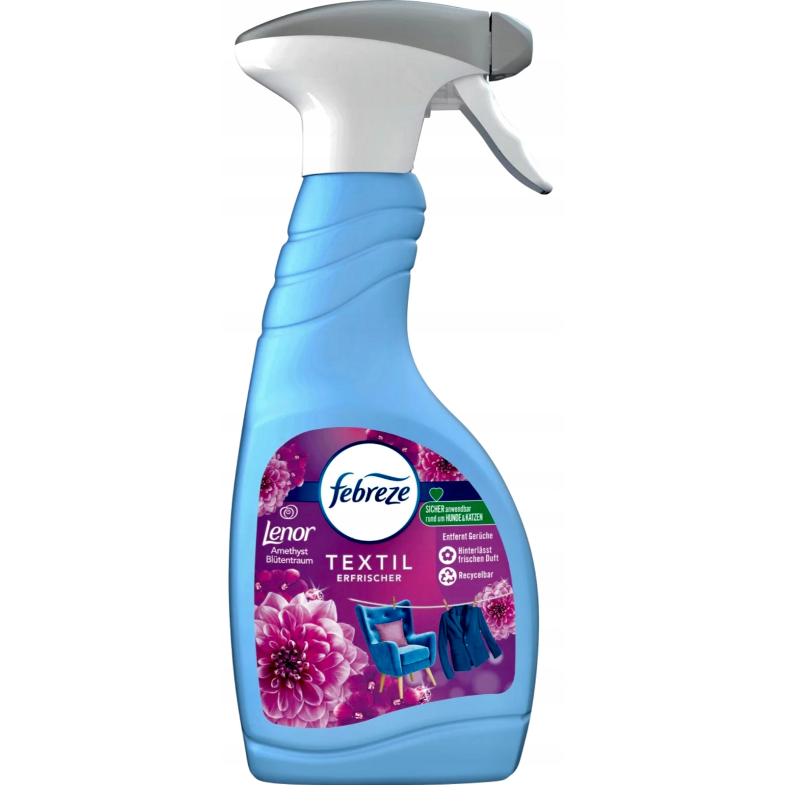 Febreze audumu atsvaidzinātājs ne tikai maskē šīs smakas, bet arī likvidē tās un piešķir jūsu audumiem jaunu svaigumu ar Lenor Amethyst.