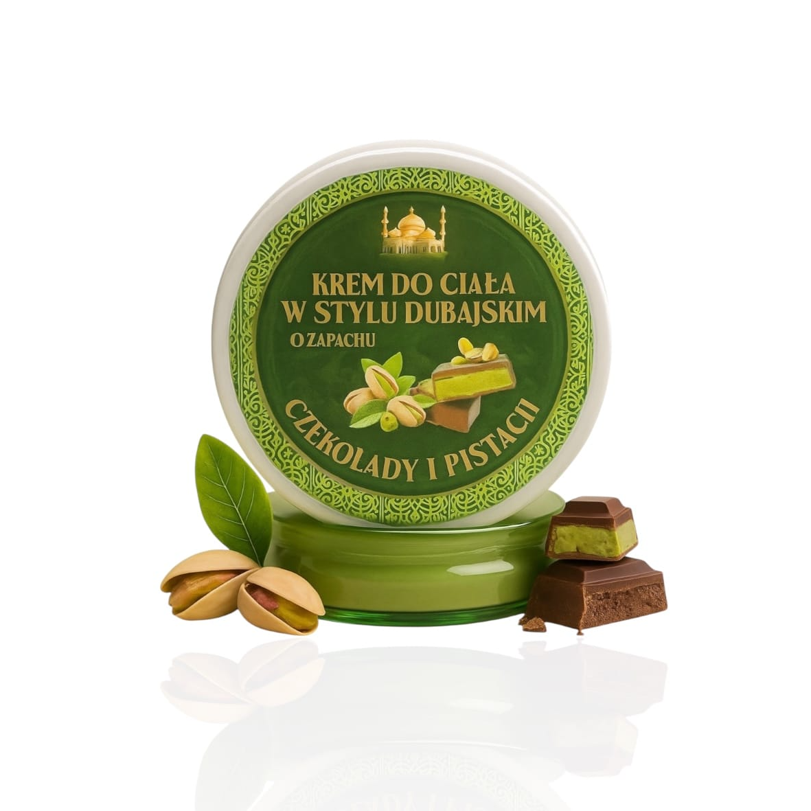 Šis unikālais ķermeņa krēms, kas iedvesmots no Dubaijas stila, apvieno intensīvu kopšanu ar unikālu saldās šokolādes un pistāciju aromātu. Ietiniet savu ķermeni greznā formulā, kas baro, atjauno un padara ādu zīdaini gludu un kārdinoši aromātisku.