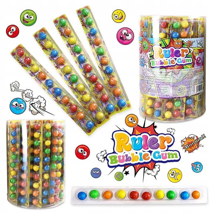 Sastāvdaļas : cukurs, glikozes sīrups, košļājamās gumijas bāze, mitrinātājs: E422; skābuma regulētāji: E296, E330; stabilizētājs E414, emulgators: E322; kukurūzas ciete; maltodekstrīns, mākslīgās garšas, krāsvielas: E102, E110, E129, E133. Krāsvielas E102, E110, E129 var nelabvēlīgi ietekmēt bērnu aktivitāti un uzmanību.