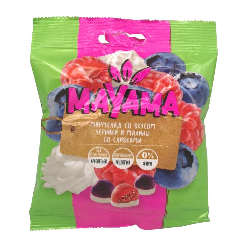 Košļājamā marmelāde ar želejas pildījumu, melleņu un aveņu garšu un krējumu.Marmelāde satur augļu sulu.