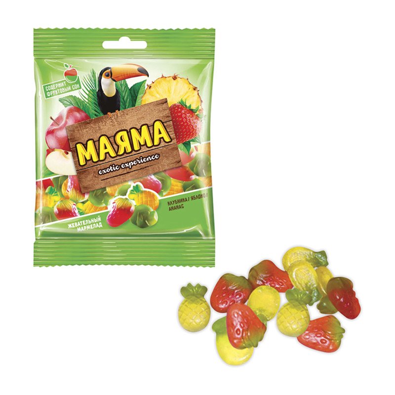 Košļājamā marmelāde ar augļu garšu. Marmelāde satur augļu sulu. Košļājamā marmelāde harmoniski iederas veselīga uztura sistēmā: - marmelāde nesatur taukus - bez mākslīgām krāsvielām - gardums ir balstīts uz dabīgu augļu sulu - želatīns uzlabo ādas un matu stāvokli - pektīns izvada toksīnus