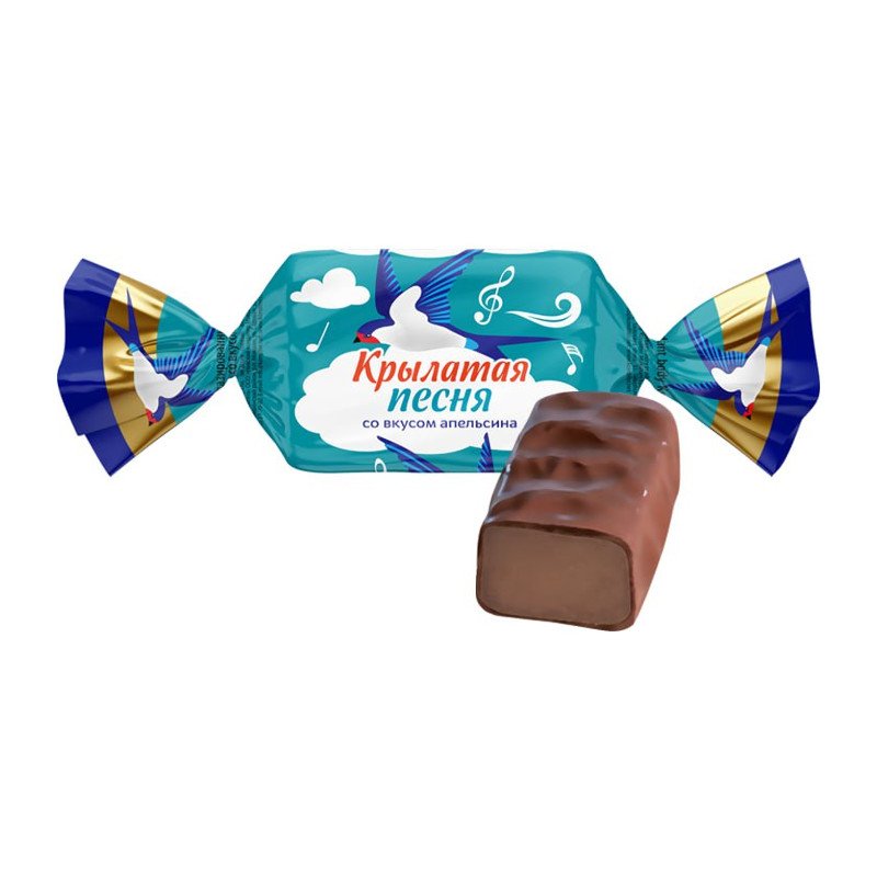 Glazētas konfektes "Krylataya Pesnya" ar fondanta pamatni un spilgtu šokolādes garšu. Maigas fondanta konfektes, pārklātas ar aromātisku šokolādes glazūru.