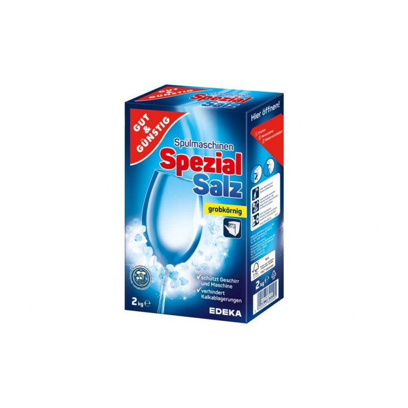 GUT & GÜNSTIG SPÜLMASCHINEN SPEZIAL SALZ/SĀLS TRAUKU MAZGĀJAMAJAI MAŠĪNAI 2kg Rupji graudains. Aizsargā traukus un trauku mazgājamo mašīnu, novērš kaļķainu nogulšņu veidošanos. 1.Aizsardzība pret kaļķainas krāsas nogulsnēm uz tinēja un traukiem, 2.Tīrība ar spīduma garantiju, 3.kalpo optimālai ūdens mīkstināšanai, 4.piemērots visām trauku mazgāšanas mašīnām, 5.pilnībā šķīstošs sāls ūdens atkaļķošanai, 6.aizsargā trauku mazgājamo mašīnu un trauki izskatīsies lieliski tīri. Informācija: Lai no krāna ūdens uz traukiem un trauku mazgājamām masīnām nenonāktu kaļķakmens, katrai trauku mazgājamajai mašīnai ir ūdens pievadīšānas sistēma, kas tiek piegādāta ar speciālu sāli un tādējādi no krāna ūdens izvada kaļķi. Padoms: ja trauku mazgājamajā mašīnā nav sāls indikatora, ieteicams ūdens mīkstināšanas sistēmu regulāri (apmēram reizi mēnesī) uzpildīt ar īpašu sāli. Lietošana: Ūdens mīkstināšanas līdzekļa sāls uzglabāšanas tvertnē iepildiet speciālo sāli saskaņā ar trauku mazgāšanas mašīnas ražotāja norādījumiem. UZMANĪBU: Nelietojiet kā galda sāli un neberiet galda sāli trauku mazgāšanas mašīnas sāls nodalījumā. Informācija par vidi: 60 iepakojuma ir izgatavoti no alpapīra un pieder atkritumu makulatūrai. Uzmanību: turēt prom no bērniem pieejamām vietām.