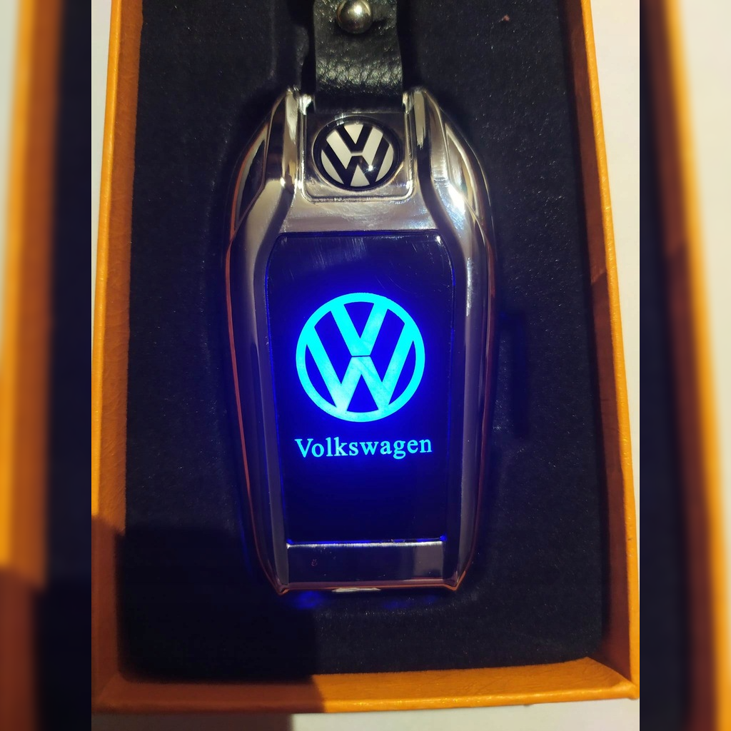 Atslēgu piekariņš ar iebūvētu šķiltavu, lukturīti un apgaismotu automašīnas zīmola logotipu.
