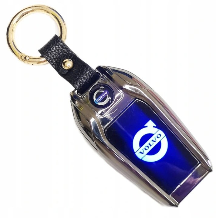 Atslēgu piekariņš ar iebūvētu šķiltavu, lukturīti un apgaismotu automašīnas zīmola logotipu.