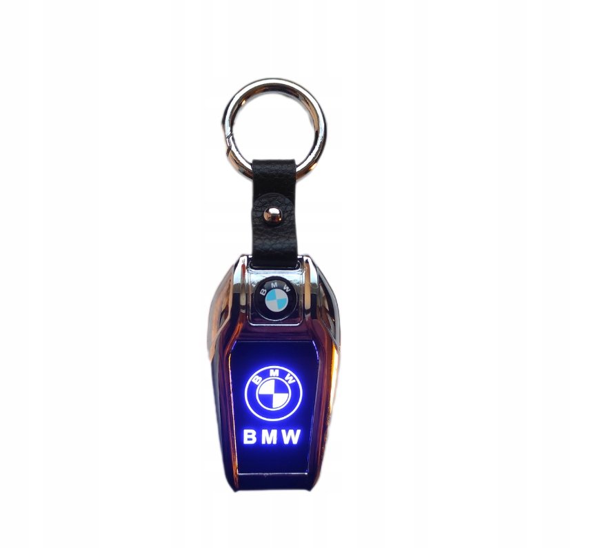 Atslēgu piekariņš ar iebūvētu šķiltavu, lukturīti un apgaismotu automašīnas zīmola logotipu.
