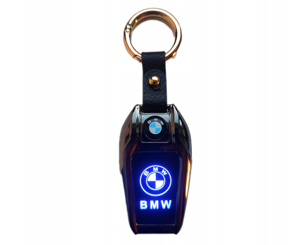 Atslēgu piekariņš ar iebūvētu šķiltavu, lukturīti un apgaismotu automašīnas zīmola logotipu.
